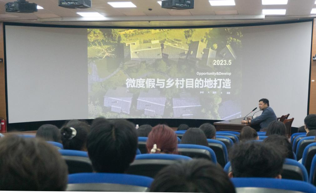 凌新建结合我国疫情结束后旅游业出现的新形势,详细分析微度假旅游的背景与契机,重点阐述了民宿运营的五个“化”与“EPC+O模式”,结合实例向大家分享了精品民宿、民宿群集、微度假综合体的打造过程。凌新建还鼓励同学们树立信心,在设计上大胆展开想象。