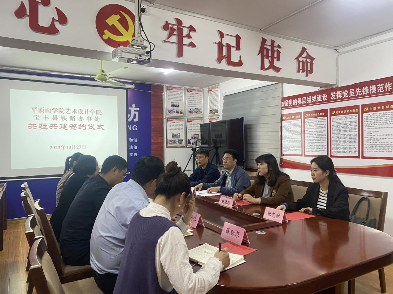 10月27日下午,E8官网登录入口与宝丰铁路办事处签订“共驻共建”协议,宝丰县副县长、铁路地区党工委书记杨康鑫,宝丰铁路办事处主任王琳,艺术设计学经理刘斐、副书记赵依晗及相关负责同志参加活动。杨康鑫主持了签约仪式。