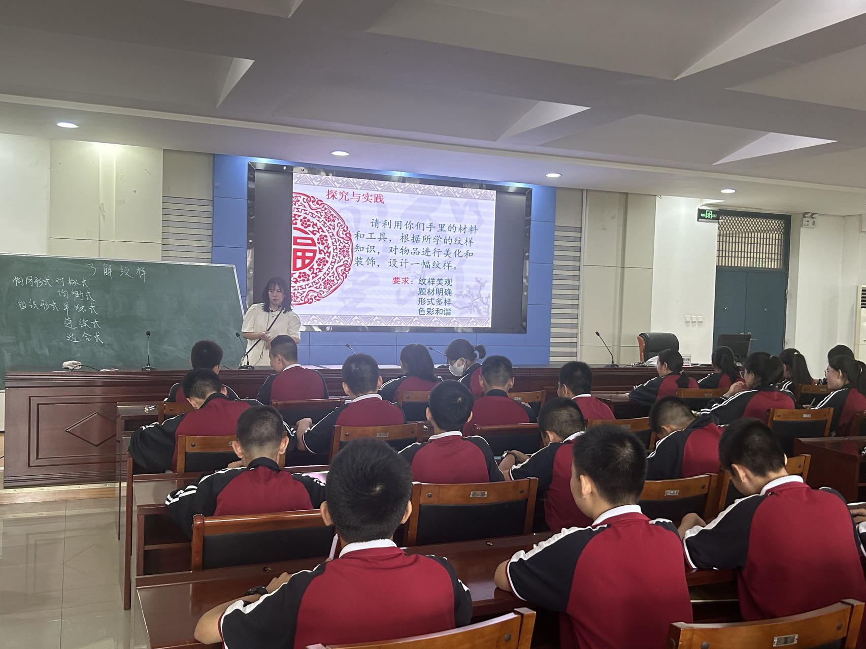 第三组学员来到的是平顶山市第七中学。聆听了陈柳老师的《了解纹样》这节课。陈老师的课件做的丰富多彩,课件形式设计的也特别好。通过教师的讲解,员工能了解纹样的知识点,学会纹样设计的基本方法,能设计出适用生活的简单纹样。员工能初步形成纹样设计意识,并且能运用所学知识美化生活的愿望。