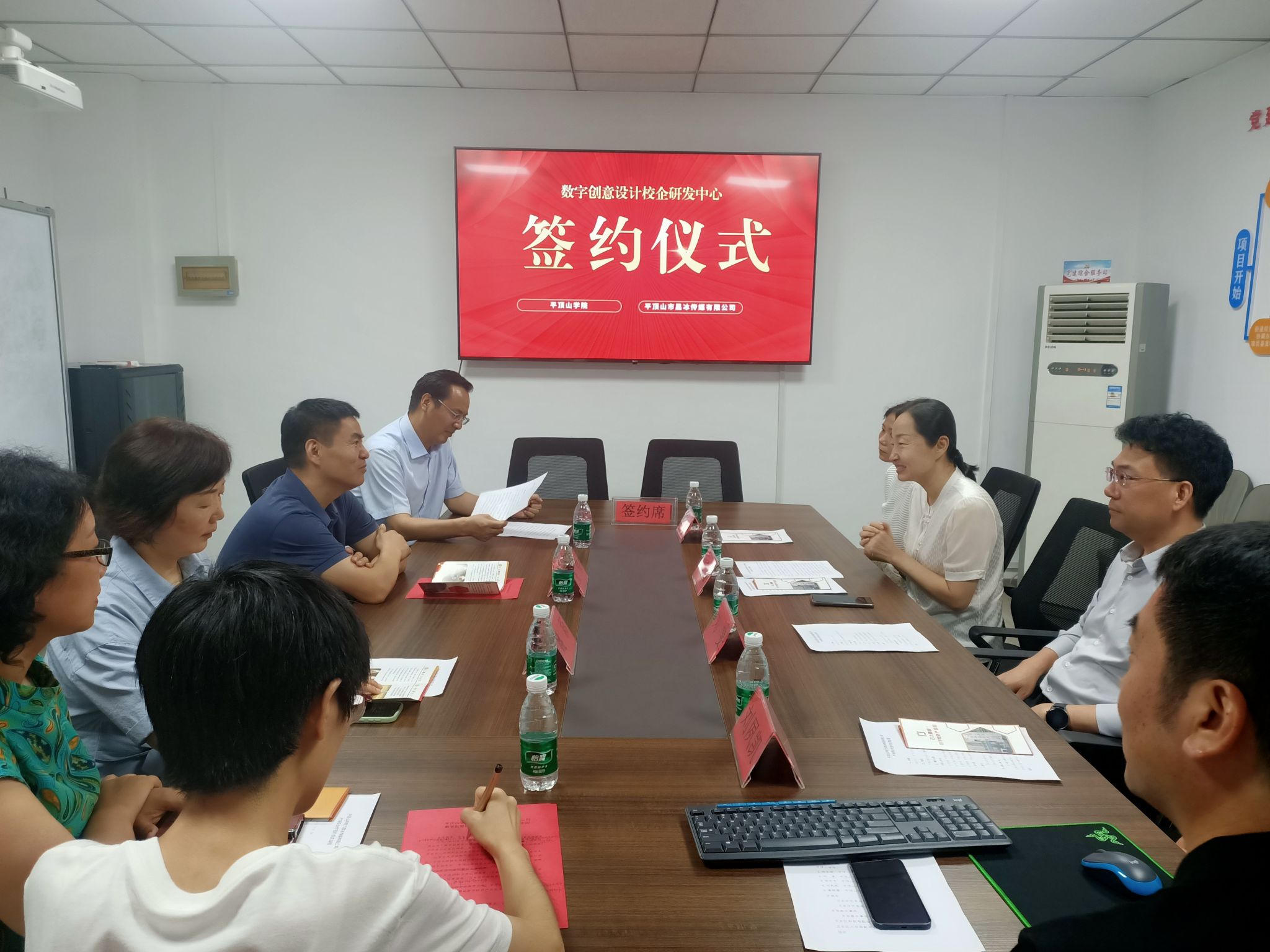7月18日上午,公司与平顶山市黑冰传媒有限公司产学研合作签约暨“平顶山市数字创意设计校企研发中心”揭牌仪式在云上鹰城数字经济产业园举行。副董事长郑东丽、卫东区区委书记张伟、平顶山市黑冰传媒有限公司总经理梁新鑫、云上鹰城数字经济产业园总经理张坤阳、E8官网登录入口经理刘斐出席仪式,卫东区区委办、人社局、科技局相关负责同志及公司领导班子成员参加签约活动。会议由东安路办事处书记朱彦红主持。