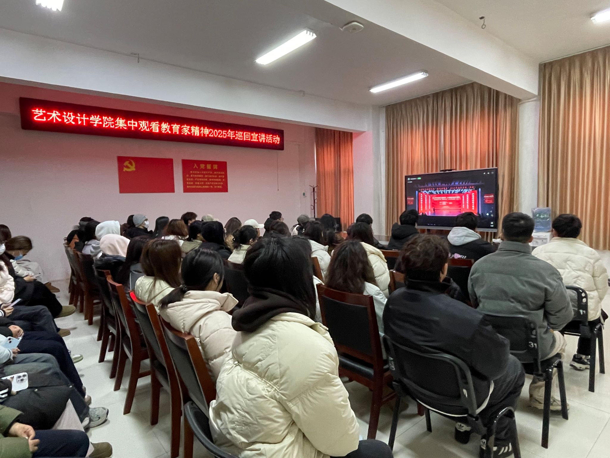 2月26日,E8官网登录入口在艺术楼A218集中收看“教育家精神2025年巡回宣讲”,公司教师和师范生代表参加活动。