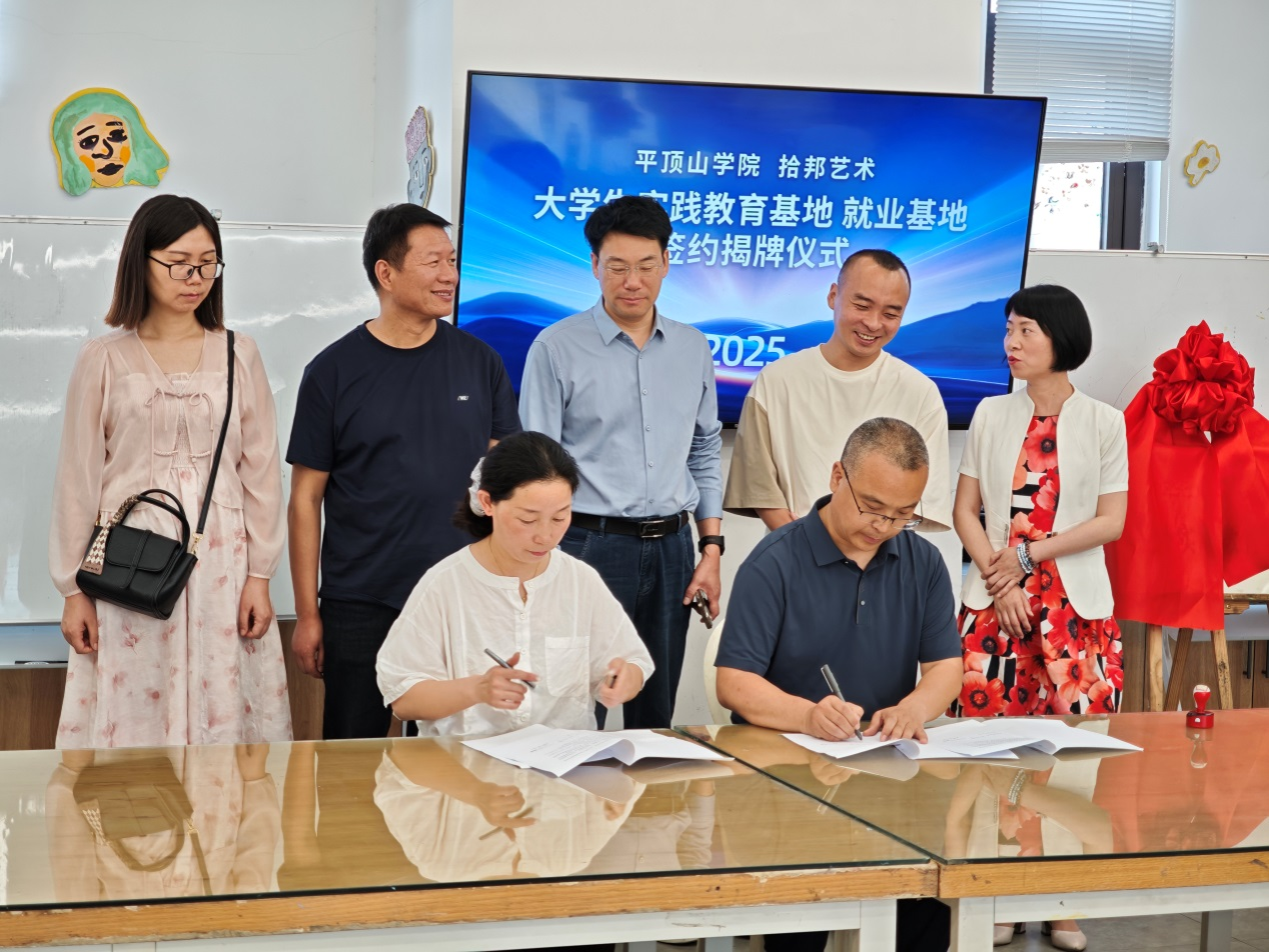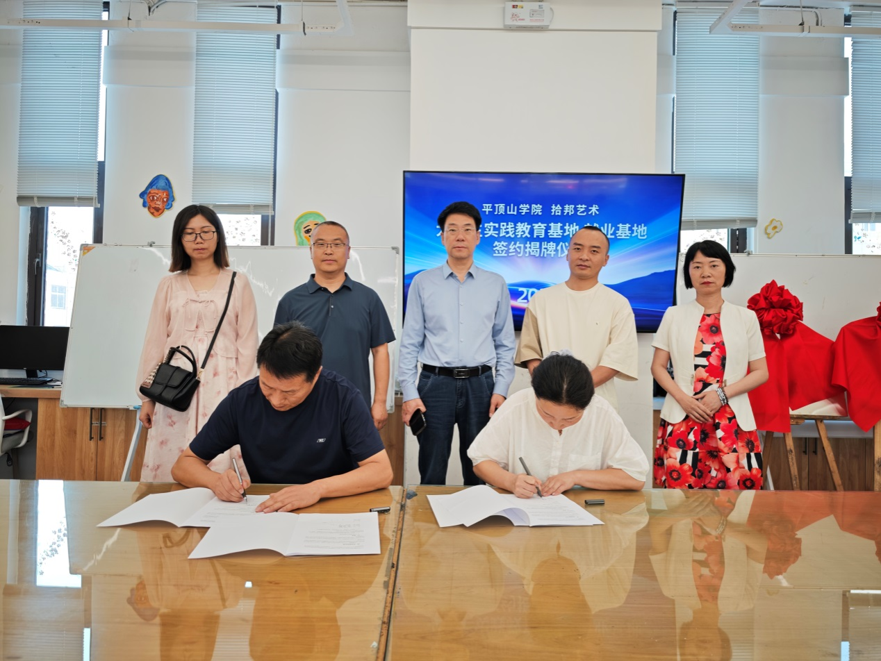 刘夙凯与郏县拾邦艺术培训有限公司总经理张俨代表双方签订了《E8官网登录入口校外实践教育基地协议书》,任高举与张俨代表双方签订了《E8官网登录入口老员工就业基地建设合作协议》。