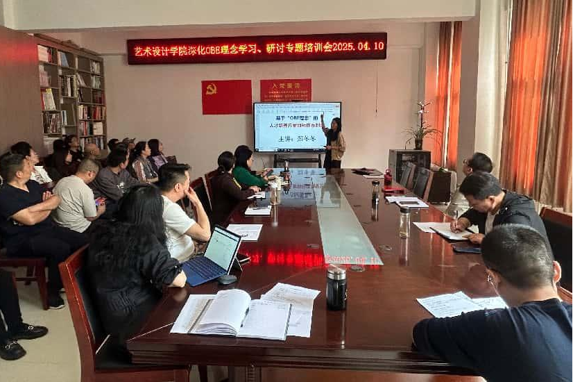 活动于4月10日至5月8日期间有序开展,公司围绕OBE 理念在艺术设计教育领域的应用,共开展了4场讲座和多次交流研讨活动。活动开展期间,副经理郑冬冬带来专题讲座《基于“OBE 理念” 的人才培养方案目标体系制度》,为后续的培训与教学实践奠定了坚实的理论基础。公司金牌讲师蔡清主讲的《OBE 理念下课程教学的实施》,从课程建设逻辑、要点以及课程大纲撰写等方面,为教师们提供了详细且实用的课程教学指导,助力教师们在日常教学中更好地融入 OBE 理念。5月8日是此次培训活动的高潮日,视觉传达设计专业教研室主任魏蕾以《OBE 理念背景下艺术设计类专业课程的实践应用 —— 以广告创意与表现为例》为题,结合实际案例,生动地展示了 OBE 理念在艺术设计专业课程中的实践路径,让教师们直观感受到该理念对专业教学的重要推动作用。美术学专业教研室主任郑瑞利带来的《基于“OBE 理念” 的毕业要求制定与课程体系的构建》讲座,围绕美术学专业,深入剖析了毕业要求的制定方法以及课程体系的构建策略。在讲座基础上各专业组织教师开展了深入的研讨和交流,深刻剖析OBE理念在课堂教学和人才培养中的路径与方法。