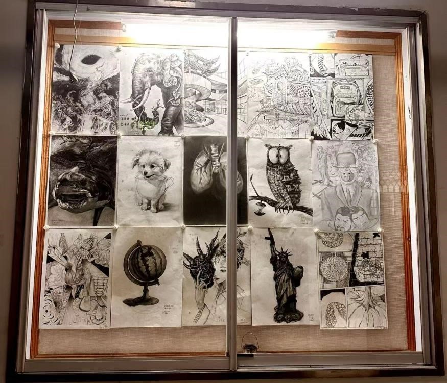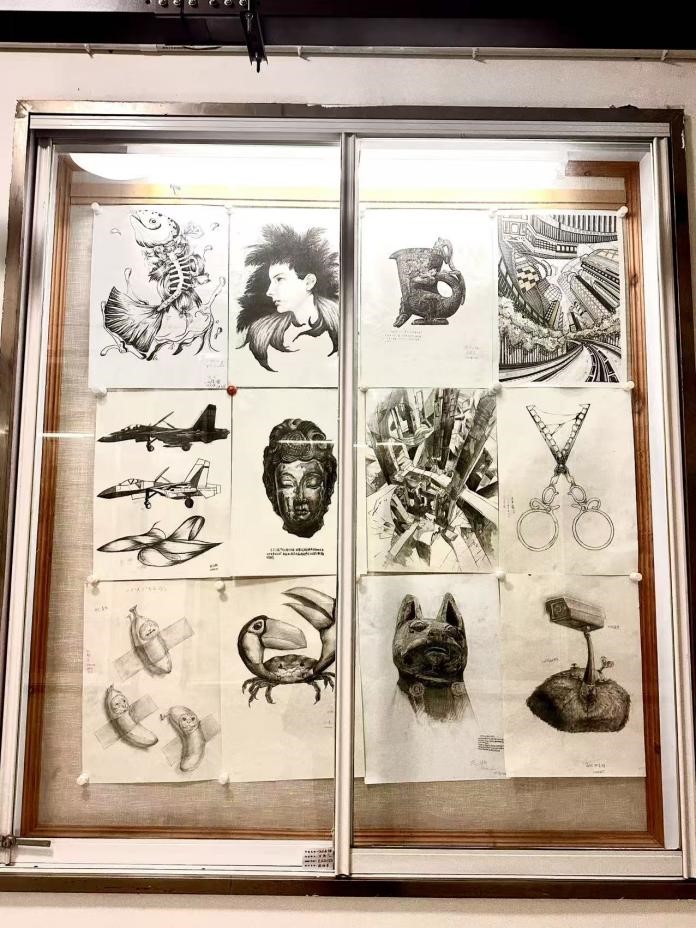 展览以“夯实造型根基,激活创意思维”为核心,涵盖结构素描、精微素描、创意素描空间想象素描、形态置换素描、具象与抽象练习、构图练习等多个训练项目。同学们以线条为媒介、以光影为语言,通过对物象结构的精准解构、细节质感的极致刻画、创意形态的大胆重构,将造型基础理论与实践创作深度融合:结构素描中展现对物象比例、透视的严谨把握,精微素描里凸显对材质肌理的细腻感知,创意素描与形态置换练习中则突破具象束缚,实现从现实到想象的艺术转化,全面呈现了从基础技法到创意思维的阶梯式成长,彰显了扎实的专业功底与灵动的艺术表现力。