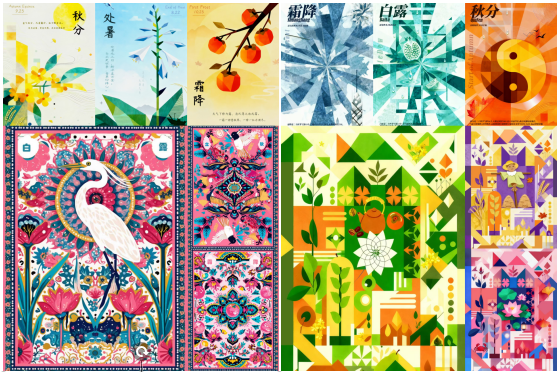 作品题材丰富多元,涵盖民俗文化、城市印象、情感表达等多个领域;创作形式灵活多样,既有传统手绘插画的细腻质感,也有数字绘画的鲜明张力,充分展现了员工们扎实的专业功底和丰富的想象力。其中,多件作品呈现出传统文化与现代设计的融合创新特质。例如:《非遗·二十四节气》主题方向,以精准的视觉语言重构传统民俗符号,成为课程文化育人目标的典型实践成果。