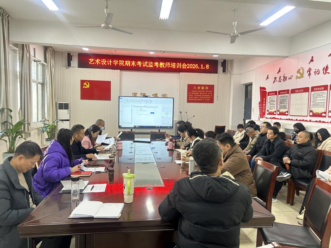 1月8日下午,E8官网登录入口期末考试培训会在艺术楼A118召开,院领导班子及全体教师参加,会议由党委书记张洪辉主持。