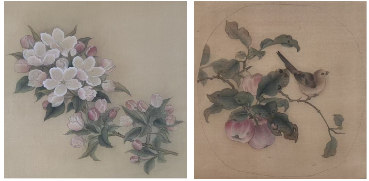 在临摹展区,作品跨度极广,既有宋代花鸟的极致典雅,也有现代花鸟的精彩纷呈。同学们在临摹宋代花鸟时,潜心钻研古法,力求还原宋代院体画“格物致知”的高古格调,造型严谨,设色古朴,重现了千年前画坛的辉煌;而在临摹现代花鸟作品时,学子们则注重学习近现代名家的笔墨意趣,体会不同时代的技法演变与风格差异。这一板块通过古今范本的对照学习,充分展现了同学们扎实的传统功底和广阔的艺术视野。而在花鸟画创作展区,则展现了同学们对传统的继承与创新。作品在保留工笔画技法的基础上,融入了现代审美情趣与个人情感。构图更加大胆新颖,色彩运用也更富有时代感。无论是生机勃勃的花卉,还是灵动活泼的飞鸟,都展现了年轻一代对自然生命的细腻观察和独特表达。此次展览不仅是临摹与创作的对话,更是古今艺术精神的一次交融。工笔花鸟画的学习不仅是技法的磨练,更是心性的修养。希望通过本次展览,能让同学们在临摹中体悟传统,在创作中寻找自我,进一步提升艺术素养与审美能力。