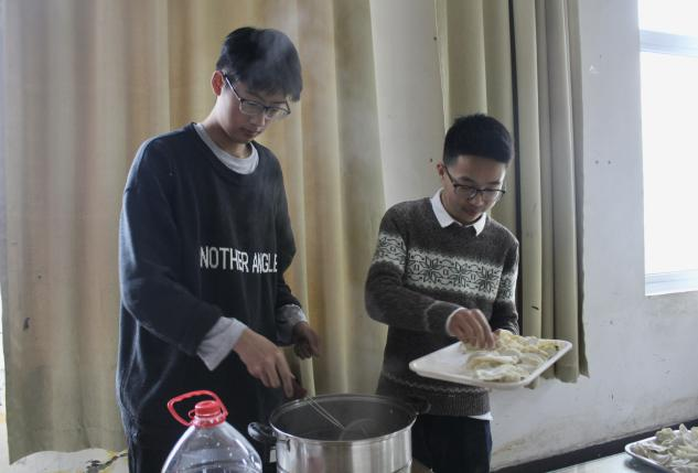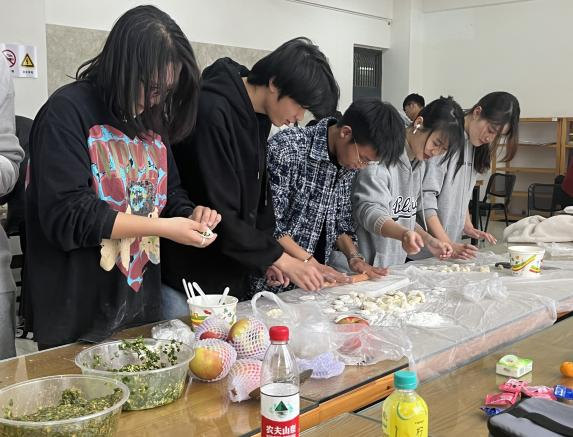 活动现场,同学们分工有序,相互配合。和面、擀皮、包饺子,大家用自己拿手的方式娴熟地包着各式各样的饺子。在一片欢声笑语中,一个个包含着幸福和温暖的饺子下了锅。同学们一同品尝自己的成果,分享劳动的快乐,共享节日的喜悦。浓浓的饺子香味儿把现场的气氛渲染出“家”的温馨和欢乐,使同学们体会到大家庭的温暖。