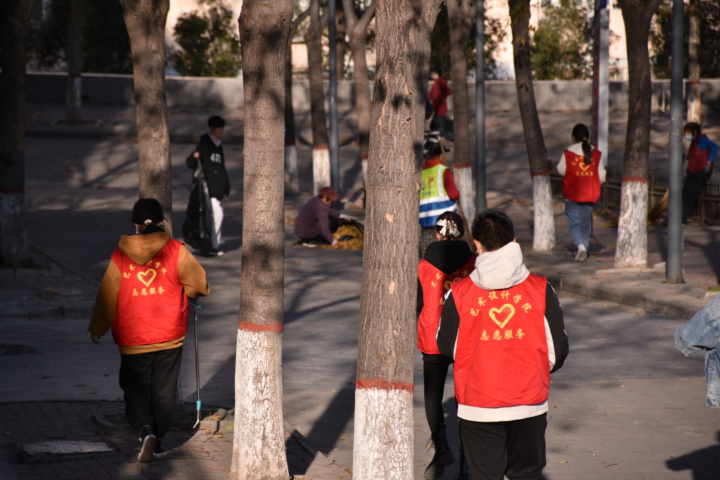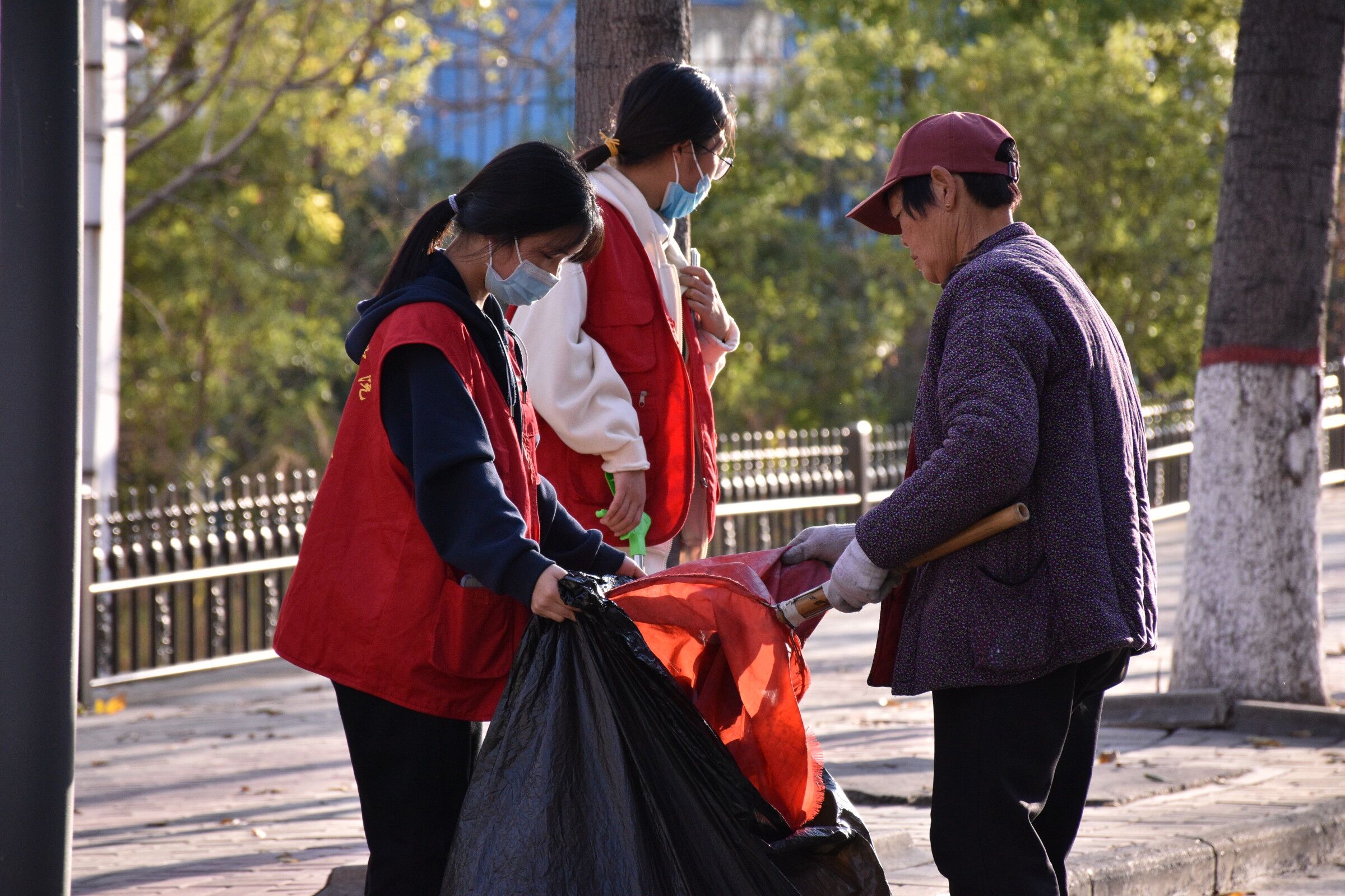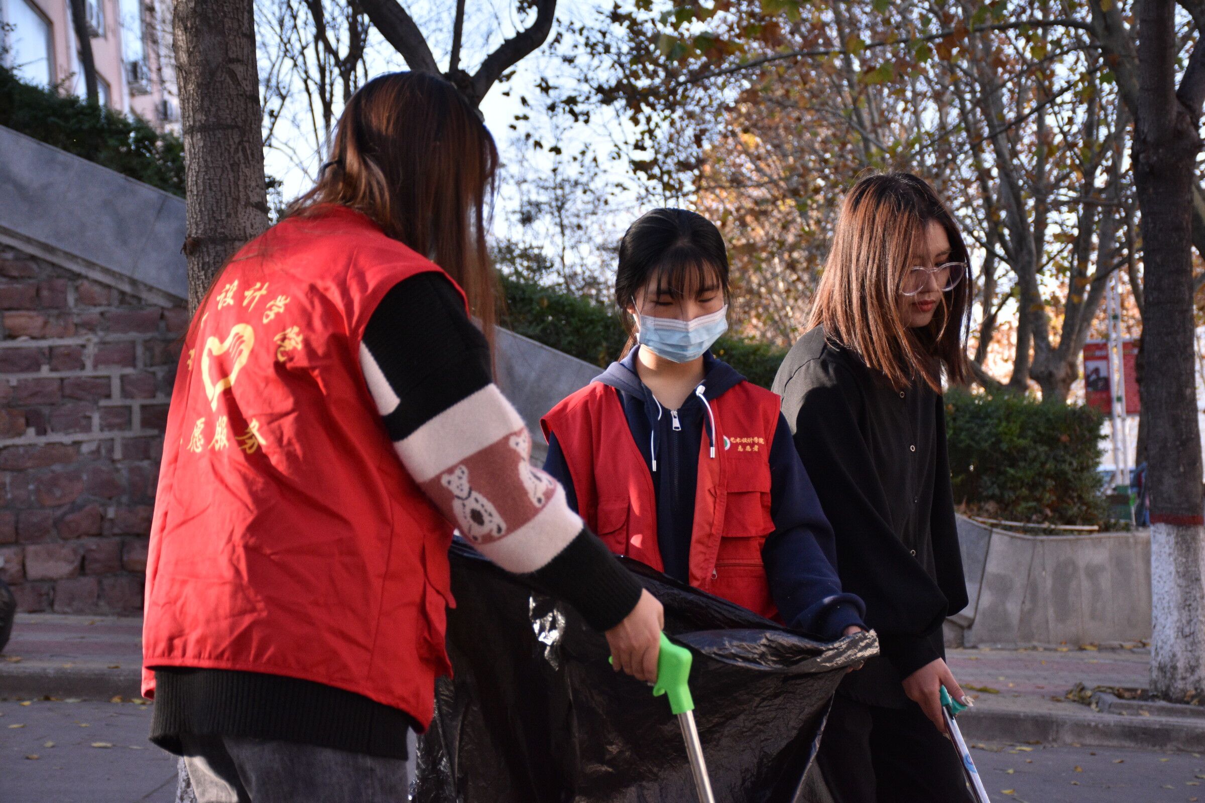 活动开始,由学风建设部为志愿者们分发清扫工具,讲明具体工作任务。接着,志愿者们两两组队在指定的区域内进行清扫活动。清扫期间,同学们或是用扫帚堆起沉积的落叶,或是用夹子捡起路边的垃圾。大家分工明确,相互配合,清扫工作有条不紊的进行着。