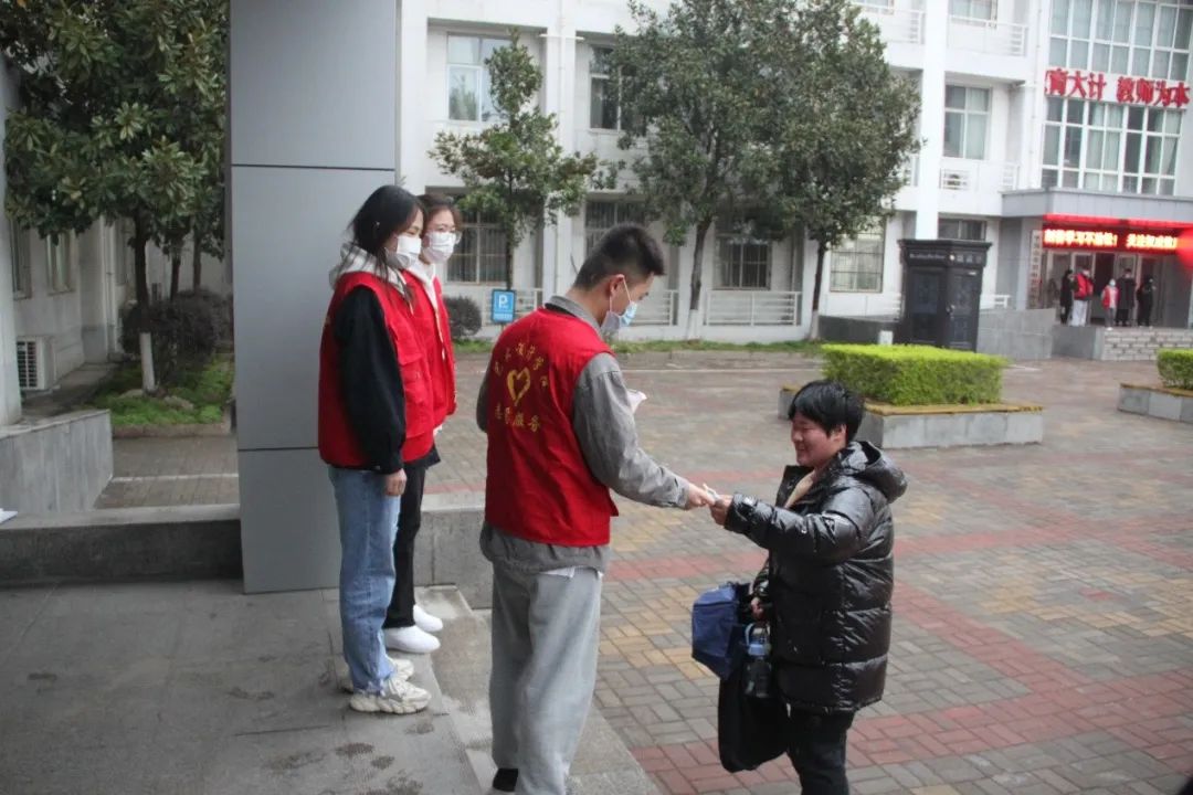 志愿者们身穿红马甲,在做好个人防护的前提下,在公司门口等人员密集区域劝导员工科学佩戴口罩,认真负责的对来往同学进行体温检测。对忘记佩戴口罩的员工,分发一次性口罩。同时,向师生宣传疫情防控常态化小知识,切实提高师生思想认识和防护能力。