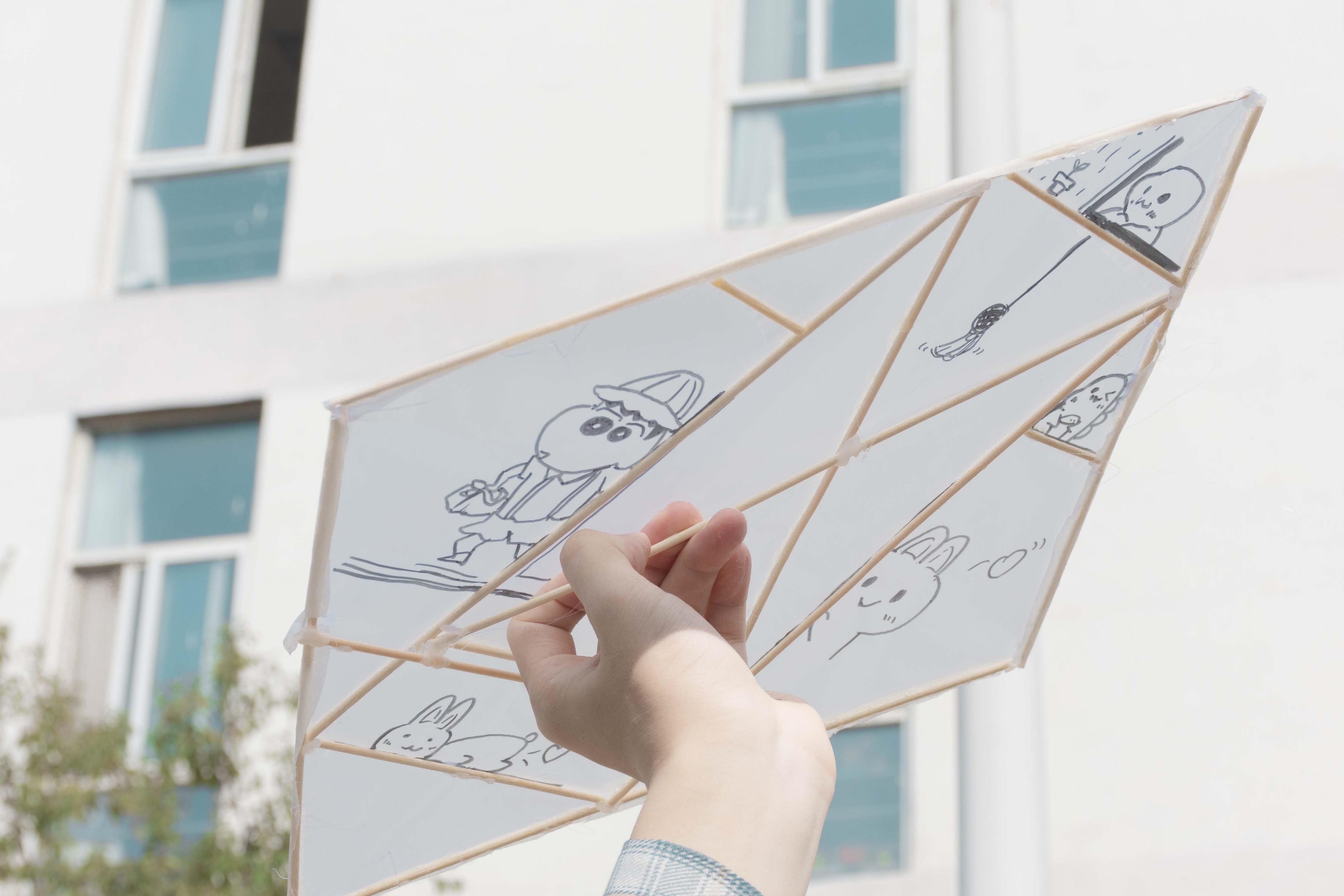 活动伊始,负责人向同学们科普了清明节的由来和民间传统习俗等知识,并引导同学们把自己知道的清明习俗分享出来。“放风筝是清明节重要习俗之一,最早的说法是将风筝放到一定的高度后,把风筝线剪断,寓意除病消灾,给自己带来好运。”负责人向同学们分享着每一个习俗背后的故事。接着,同学们在负责人的带领下,利用自己手中的工具并发挥想象力制作属于自己独一无二的风筝。制作过程中,同学们全身心的投入其中,制作出的风筝各具特色。制作完成后,负责人组织同学们在艺术楼门口放风筝,放飞大家的快乐和梦想。