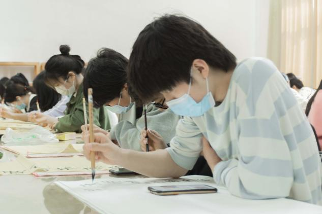 活动开始,由负责人向大家讲解书法创作的折纸方法、书法布局和落款格式。随后,大家参照提供的书写内容进行书写或进行自由创作。同学们现场挥毫泼墨,一笔一划诉春秋,一撇一捺寄温柔。在这悠悠古意中,同学们感受书法精髓,体会革命先烈们的英雄气概,赓续民族的精神基因。这场艺术的体验与创新的形式,唤起了同学们对于历史的共识与重温,优美的字体里,蕴含着对故人的思念,对前辈的敬仰。