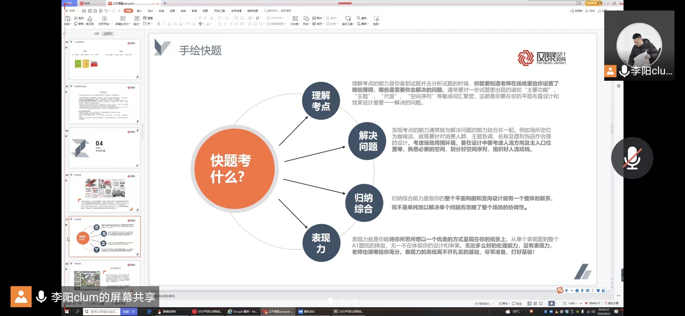 讲座伊始,李阳老师从历届全国艺术设计学研究生录取数据以及近三年考研数据进行分析,让同学们了解当前的考研形势。随后,李阳老师对考研学习中快题学习方法、考研各科复习方法,以及复试过程中的注意事项等方面进行交流。李阳老师耐心地解答同学们的困惑,并鼓励同学们提前谋划,抓住先机,努力拼搏,争取考研成功。