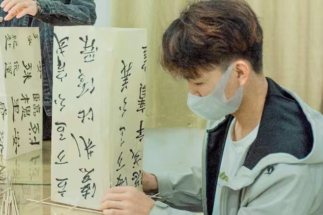 活动伊始,负责人向同学们科普了灯笼的起源和传统寓意,并通过视频详细讲解灯笼的制作过程。随后,由负责人带领同学们,利用手中的工具充分发挥想象力和创造力,制作属于自己独一无二的灯笼。创作期间同学们全神贯注,制作出各具特色的灯笼。有的提笔赋诗于其上,有的绘花描林于其间,笔墨挥毫点染出意蕴精美的画面,小小灯笼,每一张都是一副独一无二的画,既不需浓墨点缀,也不需高超的画技,传递的是一份回忆,更是一份祝福。