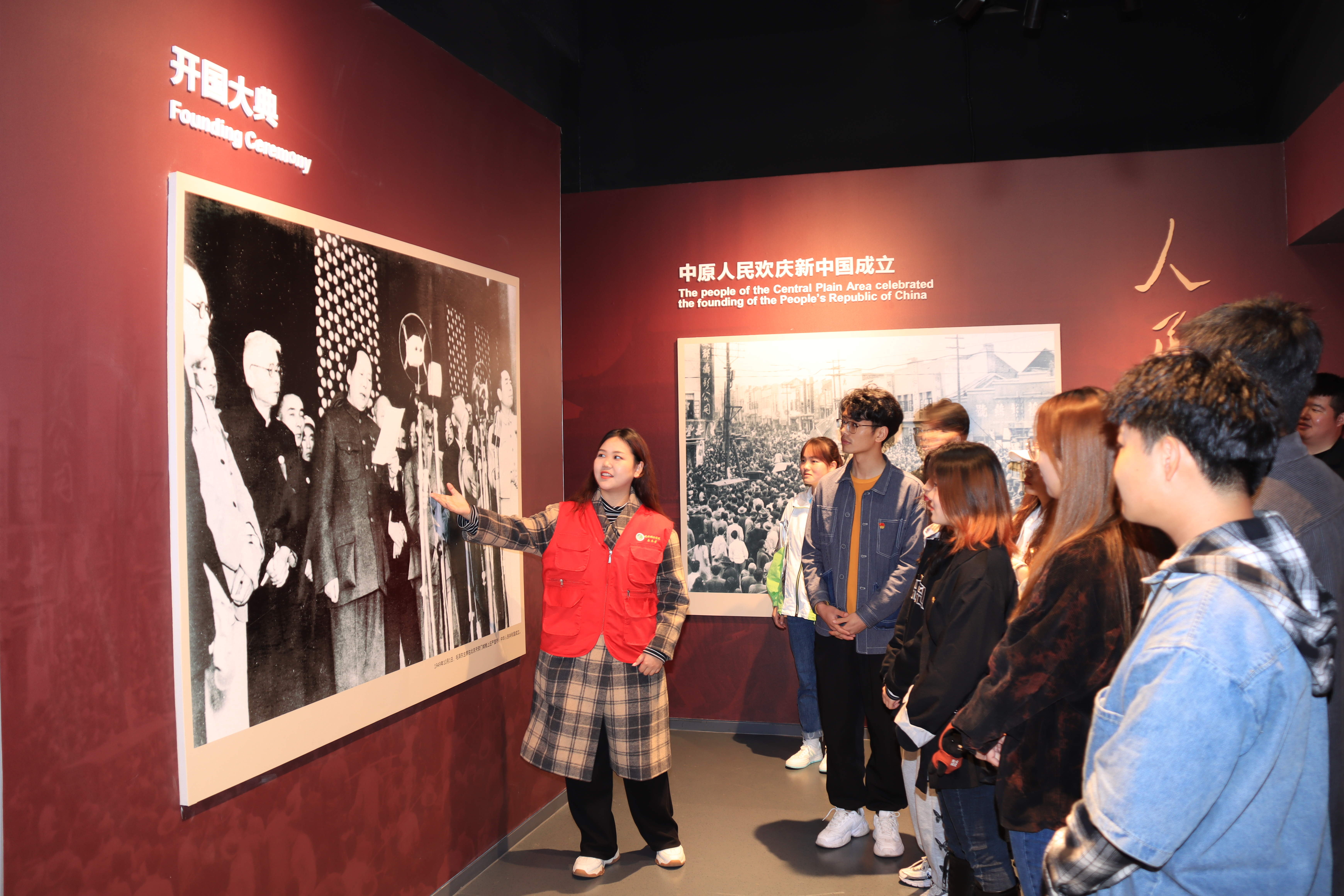 活动伊始,在纪念馆讲解员的带领下,全体师生党员怀着无比崇敬的心情认真的参观了纪念馆。纪念馆以展示中原解放战争时期的重点事件为主要内容,分设千里跃进、逐鹿中原;运筹帷幄、问鼎中原;薪火相传、光耀中原;中原首府、魅力宝丰四个展区,主要采用文字、照片、历史实物等形式对中原解放历史和红色革命精神进行集中展示。师生党员们认真听讲,仔细观看,不时对展示的历史人物、重要战役、保存物品相互交谈。随后,师生党员到达中原解放纪念馆一楼大厅的党旗前,党员们面对党旗举起右手庄严宣誓,重温入党誓词,牢记共产党员的政治责任和历史使命。