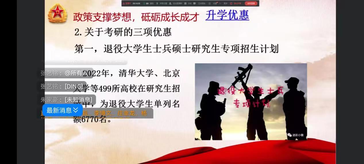 宣讲会围绕征兵政策、参军入伍流程、优待政策等相关方面进行详细介绍,做到早动员、早知晓、早准备,激发青年参军报国的热情。引导更多员工把个人成才与祖国命运紧密结合起来,将爱国之心化作报国行动。