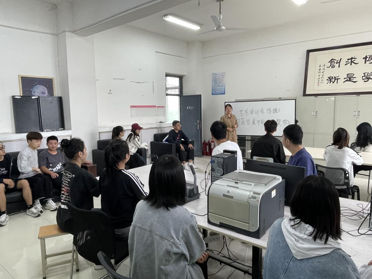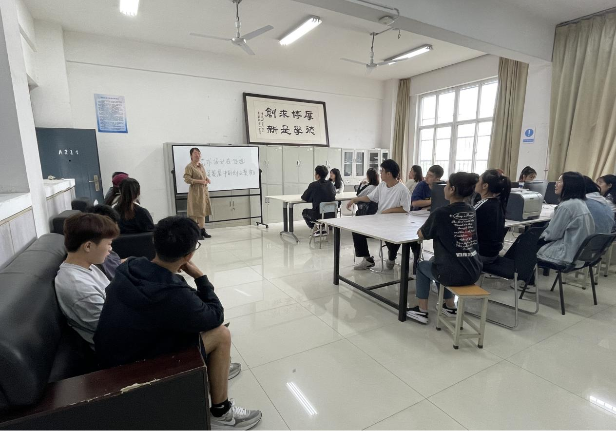 蔡清老师从艺术设计助力乡村振兴的优秀案例为切入点,分析艺术设计从赋能乡村产业振兴、促进乡村生态振兴、构建乡村美丽家园、传承优秀民族文化、树立文明新风几个方面带来新的发展视角与思路,与同学们进行分享交流。同学们纷纷表示,能够更加清晰的将创新创业与自己的专业相结合,拓宽了自己的视野,更加清楚未来的专业发展方向。同时,激发同学们参与创新创业的热情,对自己心中的创新创业梦想有了更为成熟的想法。