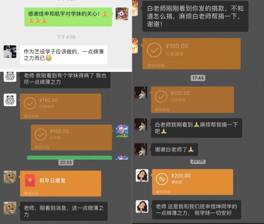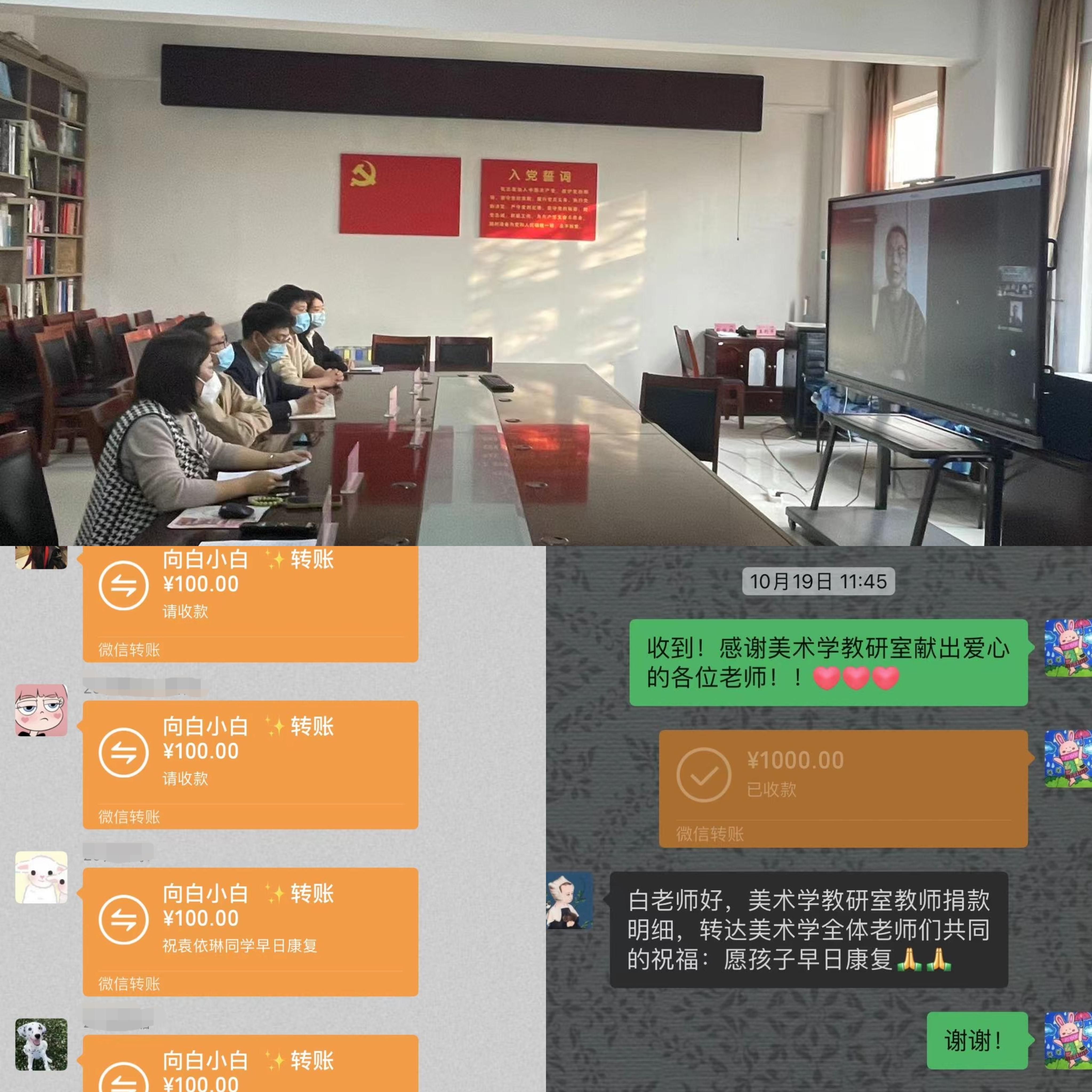 病魔无情、艺设有爱,接力爱心、传递希望。线下,师生以党小组、团支部为单位积极踊跃奉献爱心;线上,得知消息的员工们、社会爱心人士们,纷纷献出爱心,共同努力帮助这个家庭渡过难关。涓涓之水,汇出爱的暖流;爱心汇聚,筑起生命的长城,短短几天时间,共募集善款75342.1元。