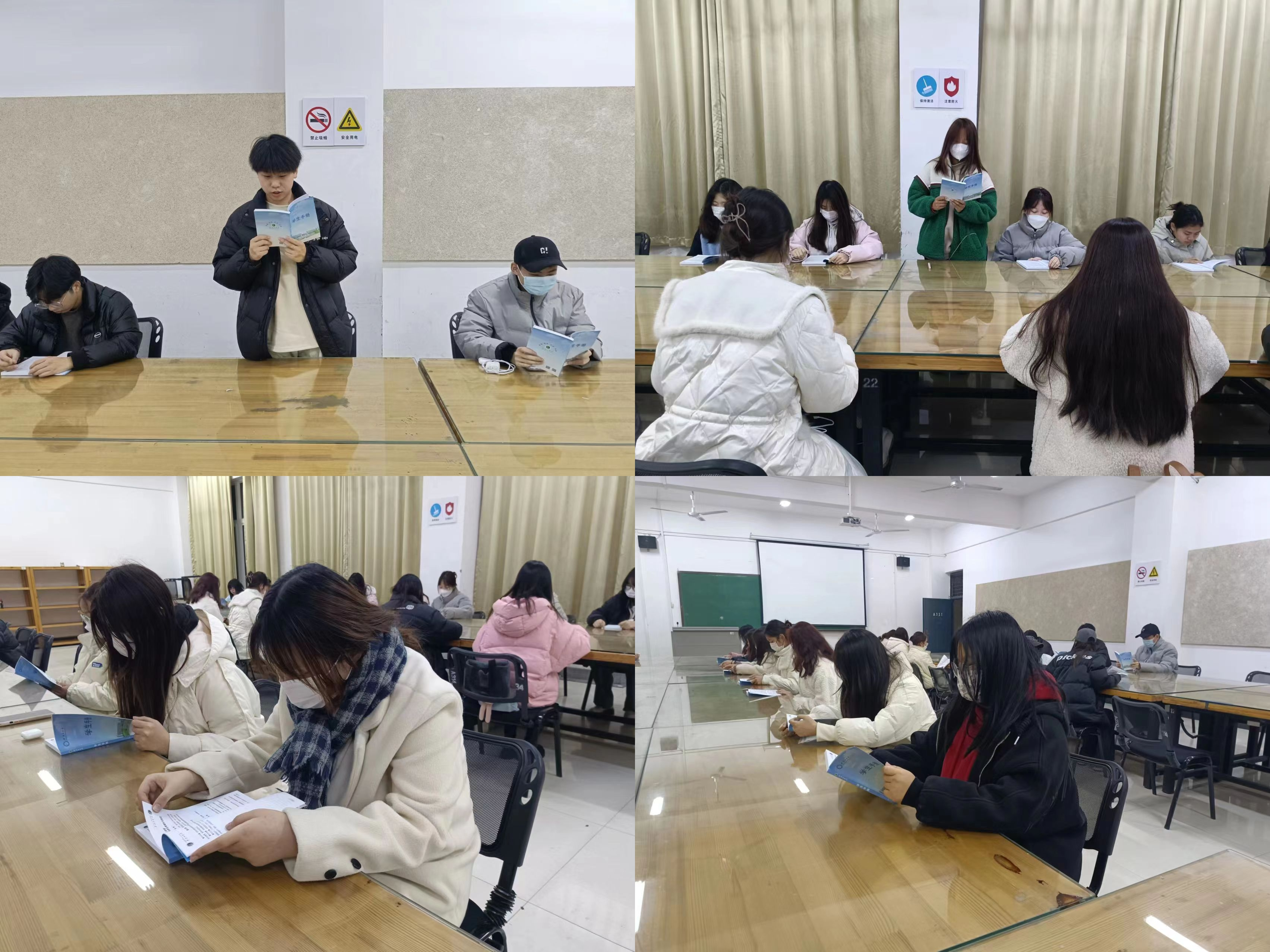 活动开始,首先由各班班长为同学们讲述本次活动的内容和目的,并强调遵规守纪的重要性,接着对《员工手册》的内容作出了详细的介绍,主要分为学籍与教学管理、员工管理、员工奖助、素质拓展、医疗保障等五个部分。学籍与教学管理部分主要讲解一些有关学籍和平时的课程及成绩记载等相关规定。员工管理方面讲述了包括课上管理、课外活动管理、宿舍管理、班干部选任与管理等各方面的规定并列出奖励与处罚的要求,期间还列举了一些员工违规违纪的处分实例,以此作为对同学们的告诫。员工奖助则主要为大家阐述了奖学金的具体信息和评定方法还有助学金相关信息。并激励同学们努力学习,争取拿到奖学金。同学们在听讲的同时并对重要内容做出记录,充分展示了他们对此次活动的重视程度。