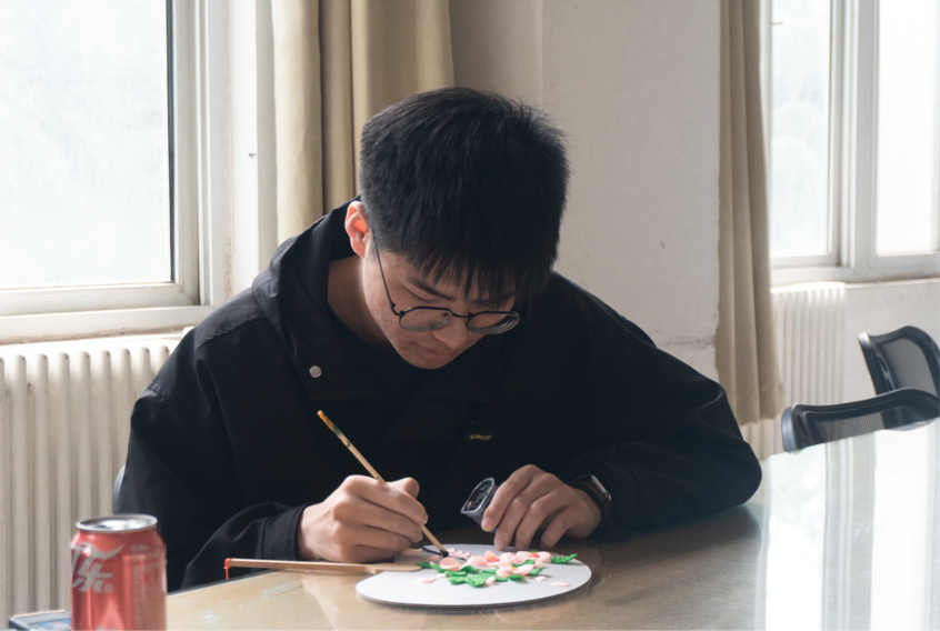 活动伊始,由社团负责人向大家讲解团扇的文化内涵和制作方法,了解民间手工技艺并积极动手实践。随后,负责人带领大家拿起手中的工具制作精美的团扇,活动过程中,大家有的将干花粘贴在团扇上、有的用黏土装饰团扇、有的在团扇上绘图写字。大家认真专注,虛心求教,相互协作,一会儿,一把把精美绝伦的团扇就“新鲜出炉”啦!同学们通过自己的想象赋予了扇子不一样的艺术价值,小小团扇上展现了无限的创意。