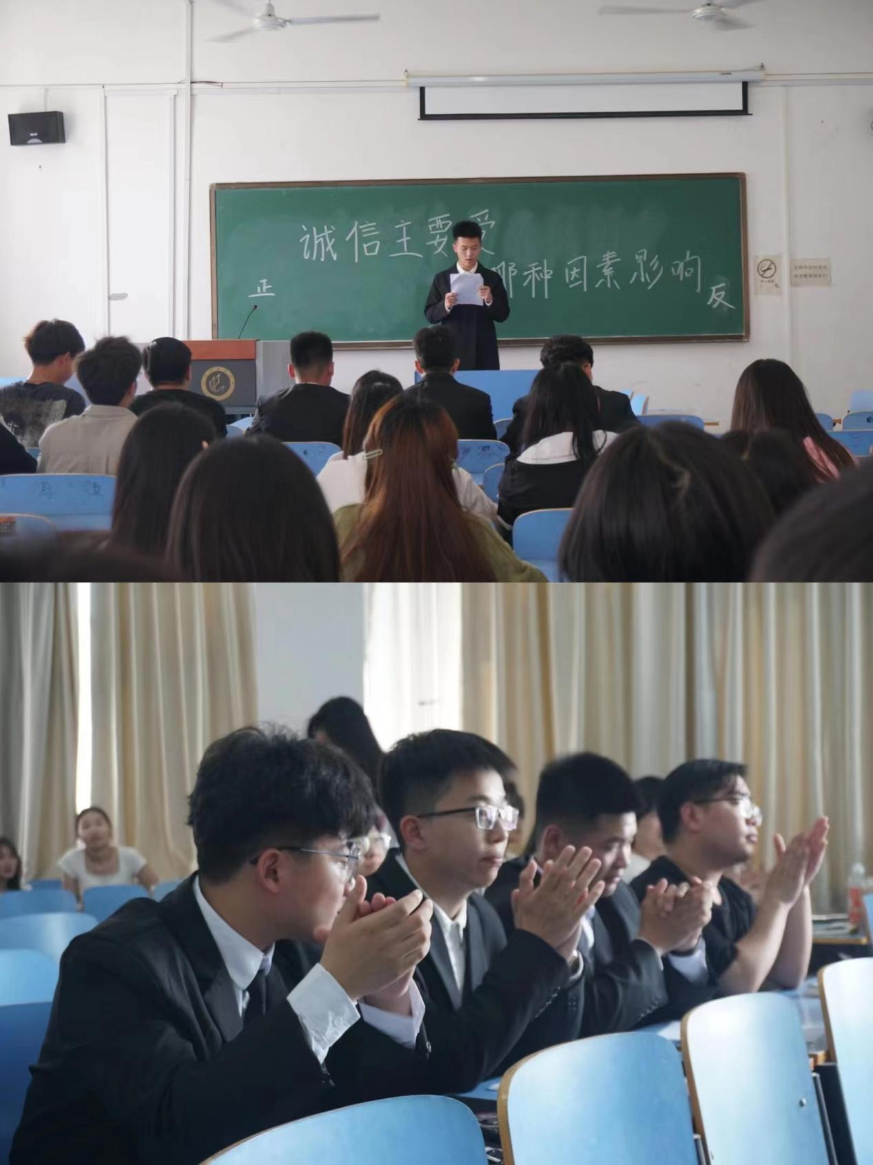 为弘扬中华民族传统美德,培养员工诚信的优良品质。5月25日下午3点,E8官网登录入口在艺术楼A417教室举办“诚信主要受哪种因素影响”主题辩论赛。由辅导员宋坤宇老师与团学会主席成员担任此次辩论赛的评委。