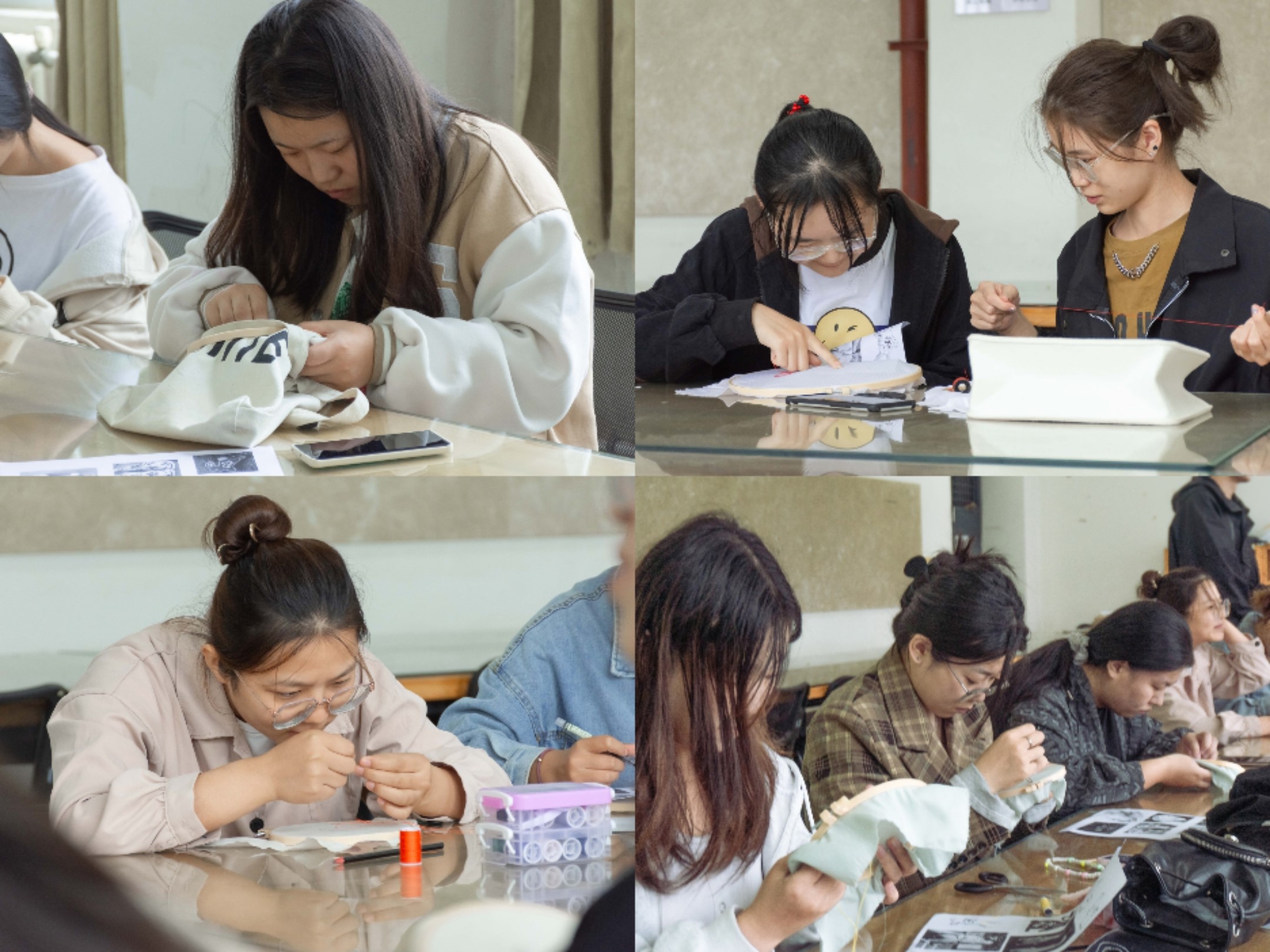 听完老师的讲解后,同学们迫不及待地拿起材料开始穿针引线。大家在绸布上一针一线绣起图案,每一名参与者都展现出了“工匠精神”,一针一线,行云流水。在精心的设计下,一个个精美别致、活泼可爱的玉兔在同学们的巧手中“变”出,尽情展示着非遗文化的魅力风采。
