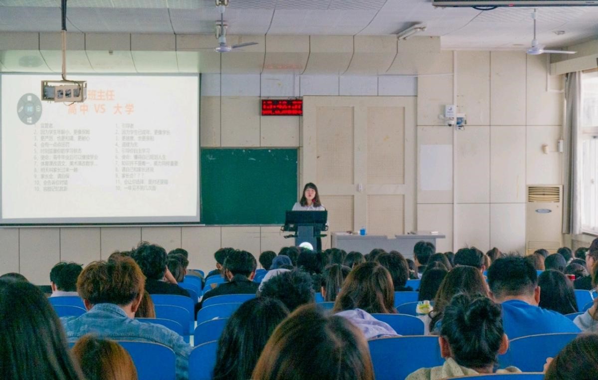 活动伊始,赵依晗首先向同学们讲述大学与高中的不同之处。紧接着向同学们提出日常生活的注意事项,结合老员工群体中易发的典型案例,分别从规章制度、校园安全、学习生活与人际交往等几个方面进行详细讲解,重点强调了自主学习的重要性。同时希望同学们尽快完成身份的转化,制定好学习计划,以昂扬的精神状态开启人生新征程,迎接新挑战。
