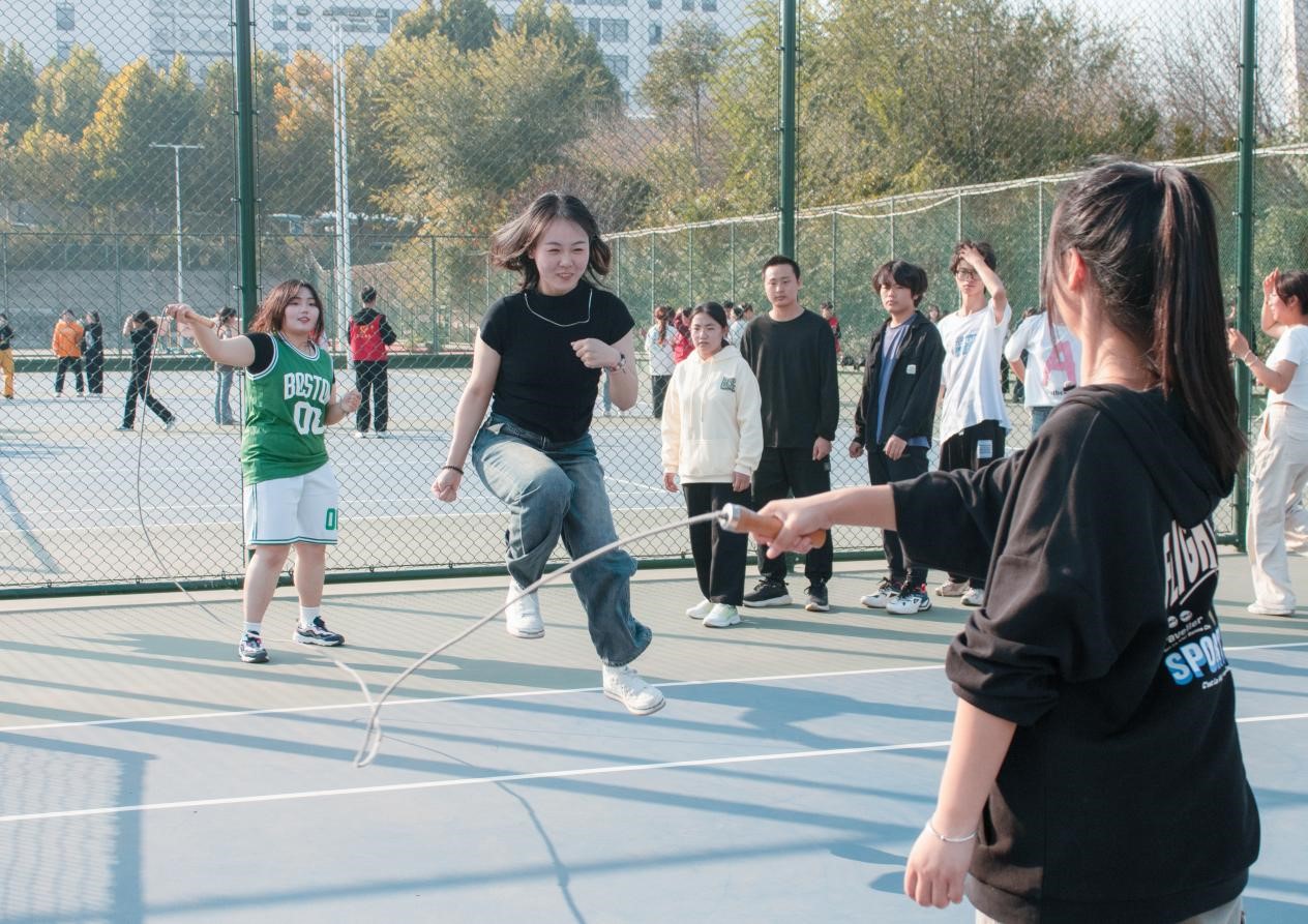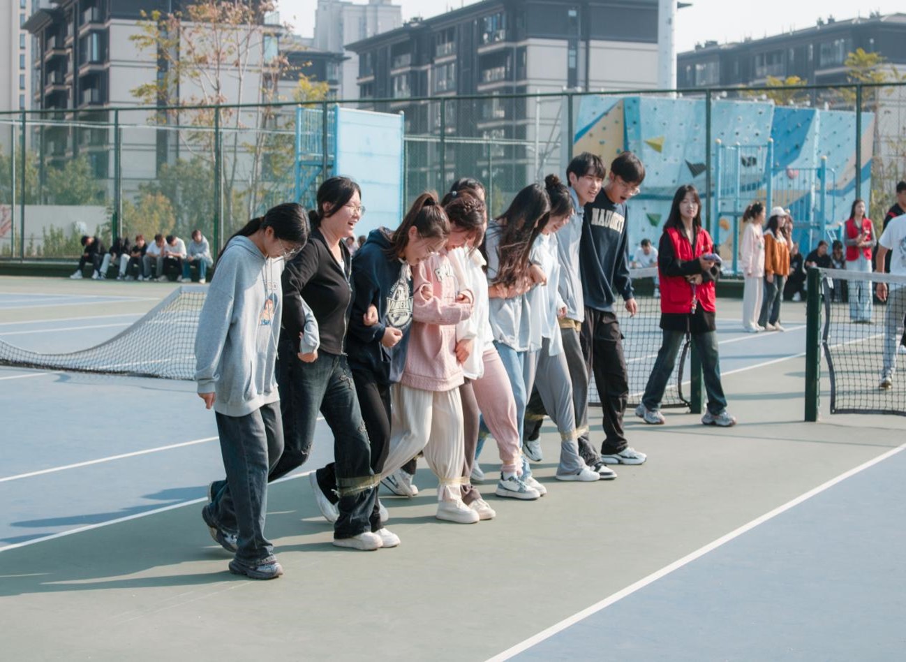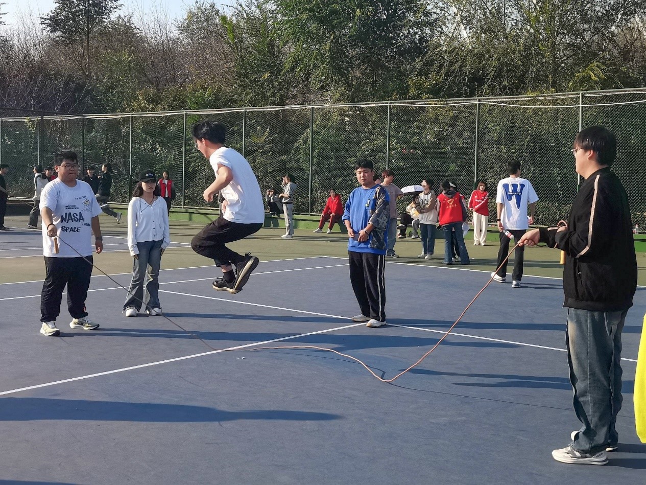 活动伊始,员工会成员担任裁判,详细向在场的同学们介绍了活动规则和注意事项。在裁判员耐心细致的讲解下,参赛同学们热情高涨,迫不及待地投入到比赛中。为确保活动的顺利进行,运动场地被划分为不同的项目比赛区域。在活动组织人员的带领下,同学们先后参与了“十人九足”、“8字跳绳”、“大象运球”、“背对背运球”和“扔沙包”等多项综合性比赛。活动现场气氛热烈,加油声与欢笑声此起彼伏。各班级队伍全力以赴、团结协作,充分发挥集体力的量。在体验快乐的同时,每个人都收获满满。
