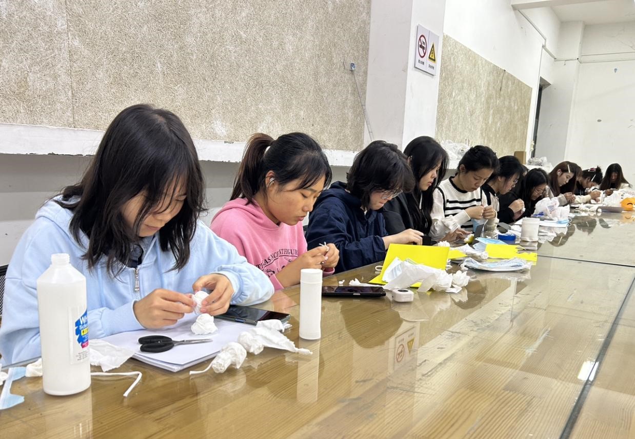 活动伊始,主持人向同学们介绍中国传统纸艺文化,接着通过视频的形式向同学们展示纸艺花的制作方法与步骤。随后,同学们开始了创作之旅。轻薄的纸张在同学们的指尖卷动,指缝中流淌着热爱,经过塑型、定型、组合、细节处理,一个个精妙的构思纷纷展现,花朵慢慢的初具雏形。活动现场气氛活跃,同学们乐此不倦地沉浸于纸花制作中。经过一下午的精心制作, 一朵朵娇艳欲滴的花在同学们手中绽放。同学们的作品各不相同,有的花朵精致而华丽,有的简约而清新,但每一朵花都有着独特的韵味和风格。