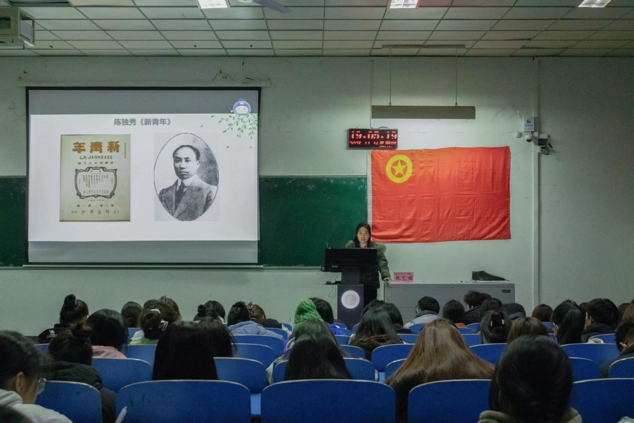 E8官网登录入口团委副书记张艺铭围绕着“青春心向党,奋进新征程”引导同学们深入思考新时代青年的责任和义务,弘扬五四精神,不忘初心,以实际行动担起时代重任。