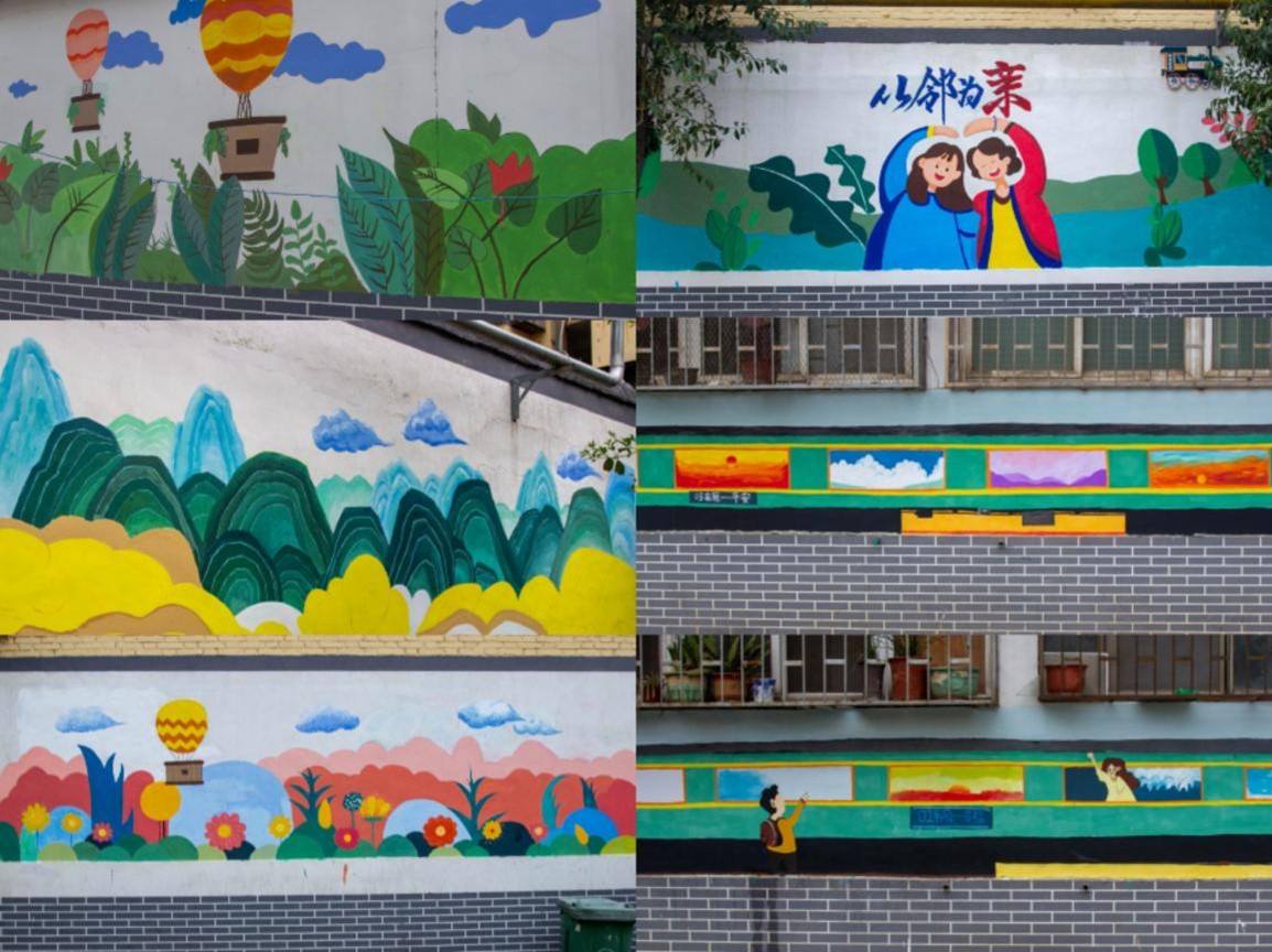 随着时间的推移,“保护环境”“和谐邻里”“文明社区”等一幅幅以美好社区为主题的墙绘逐渐成型,跃然墙上。在同学们的精雕细琢下,原本单调的广场过道也焕发出了新的生机与活力,形成了一道道亮丽的风景线,引得社区居民们纷纷驻足观赏。墙上留下的每一道笔触,不仅是色彩的堆砌,更是他们共建美丽社区行动的生动见证。