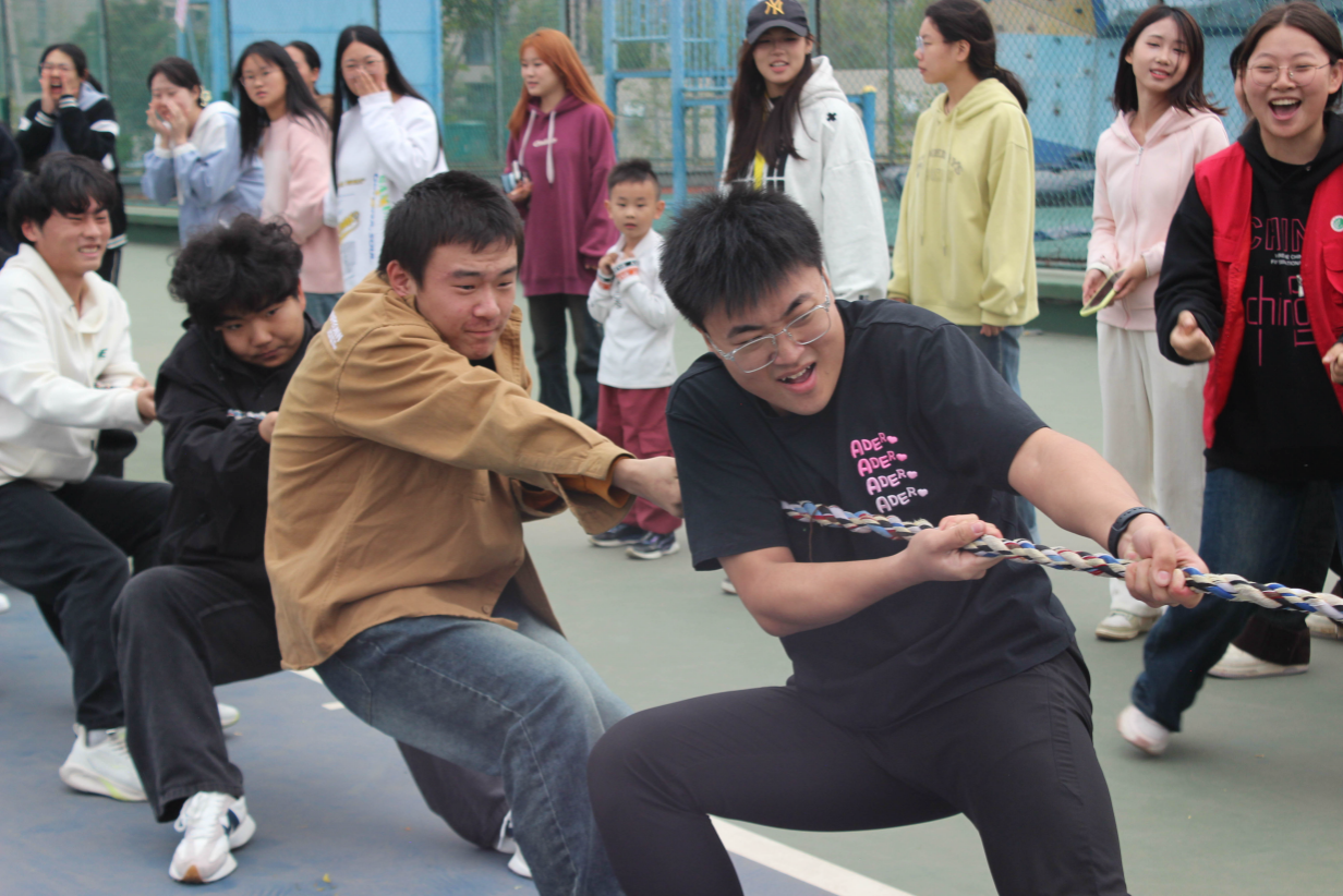 排球场上洋溢着欢声笑语,同学们在体育项目中尽情挥洒汗水,展现出积极向上的精神面貌。在拔河比赛中,各队同学齐心协力,绳索两端的拉扯不仅是力量的较量,更是团队协作与意志的比拼;八字跳绳比赛中,团队成员之间的默契配合至关重要,同学们须在极短的时间内完成精准的跳跃动,以保持绳子的连续转动;背对背夹球比赛中,同学间两两配合,默契地移动步伐,保持球的稳定。