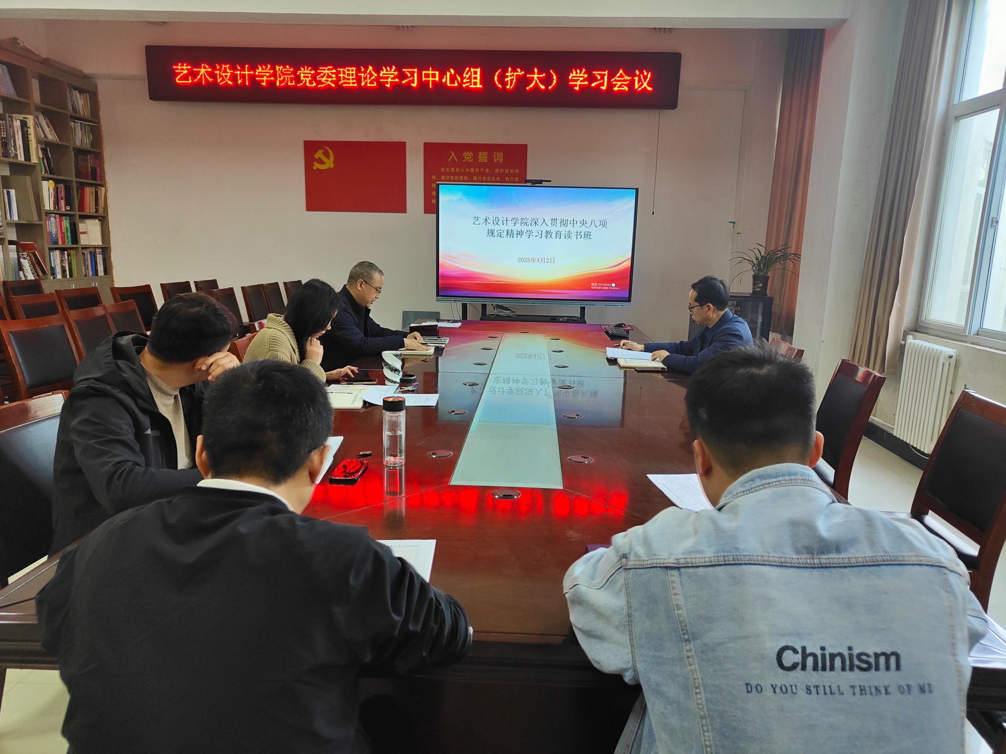 3月31日-4月2日,E8官网登录入口在艺术楼A218会议室举办了党委理论学习中心组(扩大)深入贯彻中央八项规定精神学习教育读书班。公司领导班子成员、党政办主任、组织员等参加了读书班,党委书记张运生主持读书班。