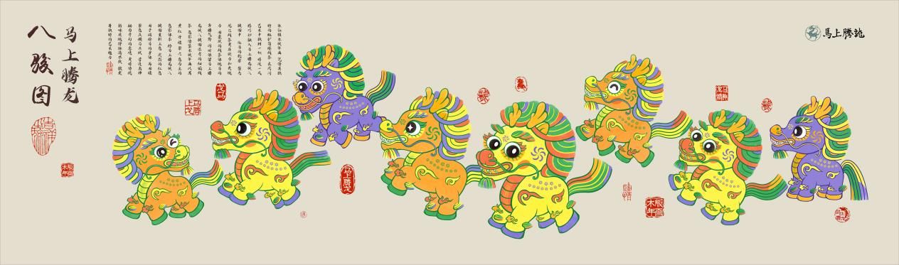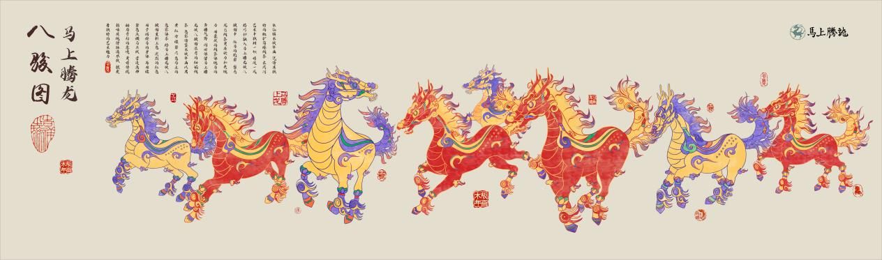 2021级视传专业 李庆沛 李文倩 河南电视台“龙马IP”《八骏图》插画设计