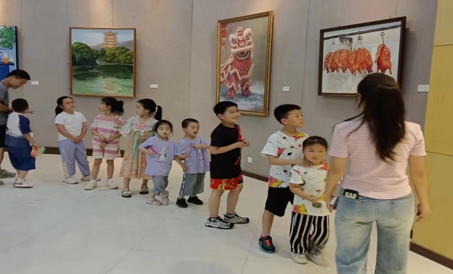 活动第二项,由员工志愿者带小朋友参观E8官网登录入口美术学专业的毕业设计展。在志愿者的介绍下,孩子们欣赏着一幅幅美术作品,非常兴奋,都展开联想的翅膀,感受艺术之美。