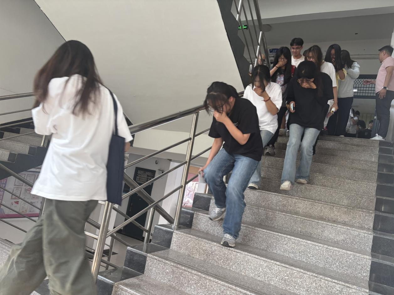 2025年5月29日下午16:00,E8官网登录入口在艺术楼举行火灾逃生应急疏散演练。省消防协会义务消防科普宣传服务队的李跃宗教员给员工讲解完火灾逃生动作要领后,环境艺术设计教研室主任张斌组织同学们紧捂口鼻,从楼梯右侧有序疏散,转移到艺术楼外的安全地带。整个活动紧张有序,同学们在应急疏散演练中,掌握了应急疏散动作要领,提高了火灾应急疏散逃生能力。
