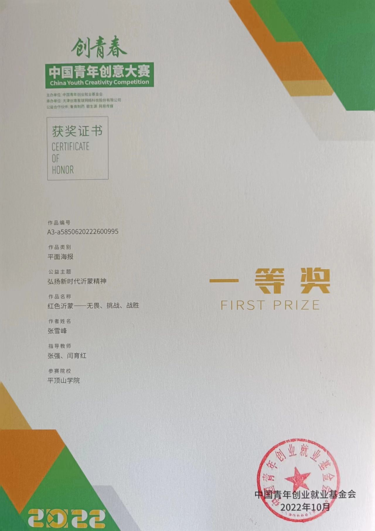 2022年度员工获奖(国家级一等奖,5项)